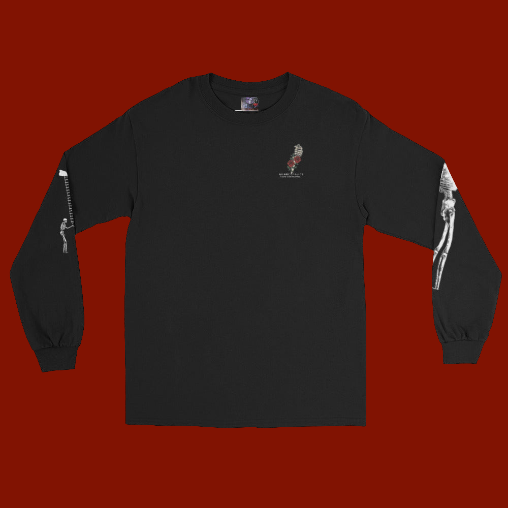 Goth is too black and white. Punk is too analog. This long sleeve exists where they meet—in the static, in the glow, in that space where skeleton lovers dance in neon light.